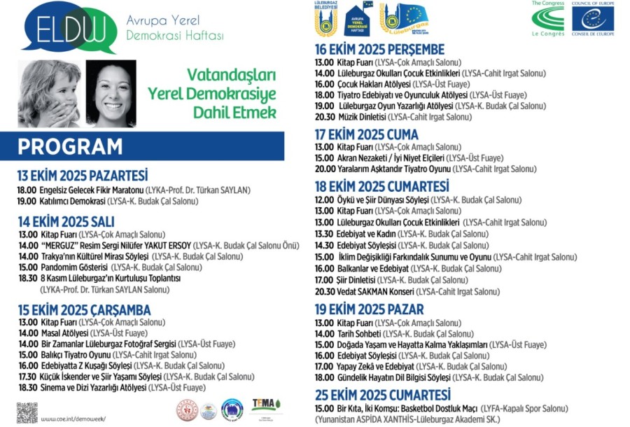 Lüleburgaz’da Avrupa Yerel Demokrasi Haftası etkinlikleri 13-25 Ekim tarihleri arasında LYSA, LYKA ve LYFA'da gerçekleştirilecek etkinliklerle başlıyor.- Avrupa Yerel Demokrasi Haftası kapsamında...