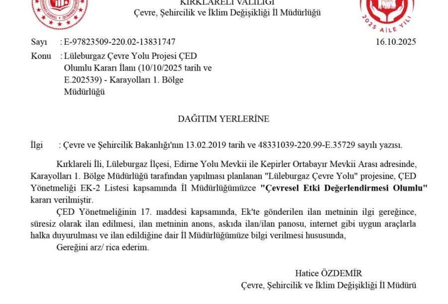 Lüleburgaz’da Karayolları 1. Bölge Müdürlüğü tarafından yapılması planlanan ‘Lüleburgaz Çevre Yolu’ projesine ‘ÇED olumlu’ kararı çıktı. Söz konusu kararla, Lüleburgaz’ın kent merkezinden geçen ulusla...
