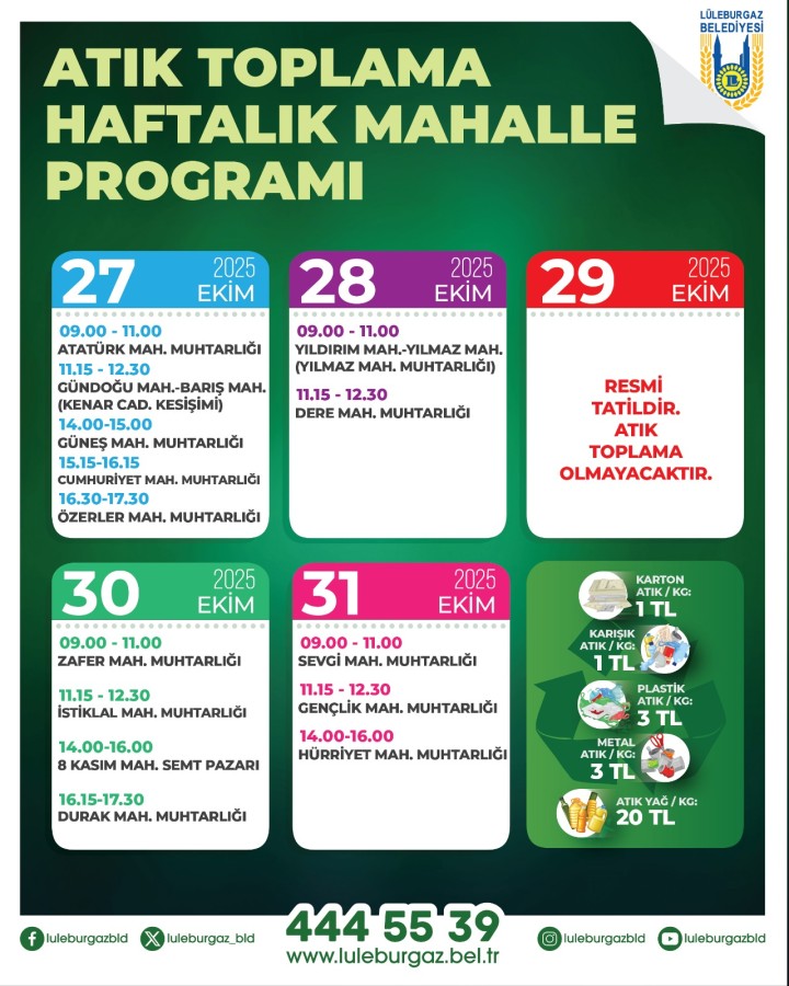 • Mobil Atık Aracı 27-31 Ekim Programı /