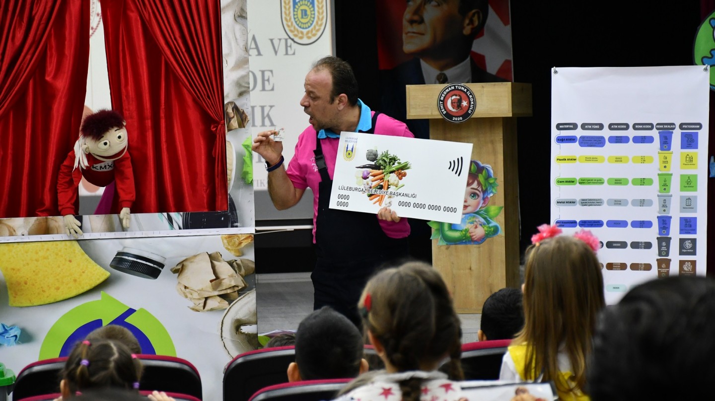 Lüleburgaz Belediyesi İklim Değişikliği ve Sıfır Atık Müdürlüğü ve Lüleburgaz İlçe Milli Eğitim Müdürlüğü işbirliği ile yürütülen ‘Renklerle Sıfır Atık Eğitimi’ projesi kapsamında Şehit Mednan Tuna İlkokulu'nda etkinlik düzenlendi. Etkinlikte belediyenin maskotu ‘Bilgeç’ kukla gösterisi sahnelendi.