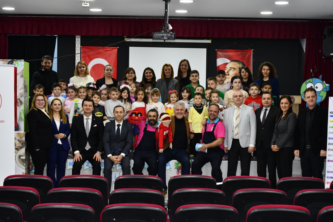 Anasınıfı öğrencilerinin atıklardan üretip yeniden kullanıma kazandırdıkları ürünlerden oluşan sergiyi gezen protokol üyeleri, daha sonra ‘Bilgeç ve Egemen Abi’ kukla gösterisini izledi.