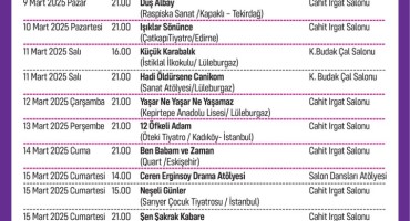 7 Nisan’a kadar sürecek Lüleburgaz Amatör Tiyatro Festivali programı şu şekilde;