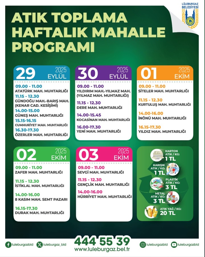• Mobil Atık Aracı 29 Eylül-3 Ekim Programı /