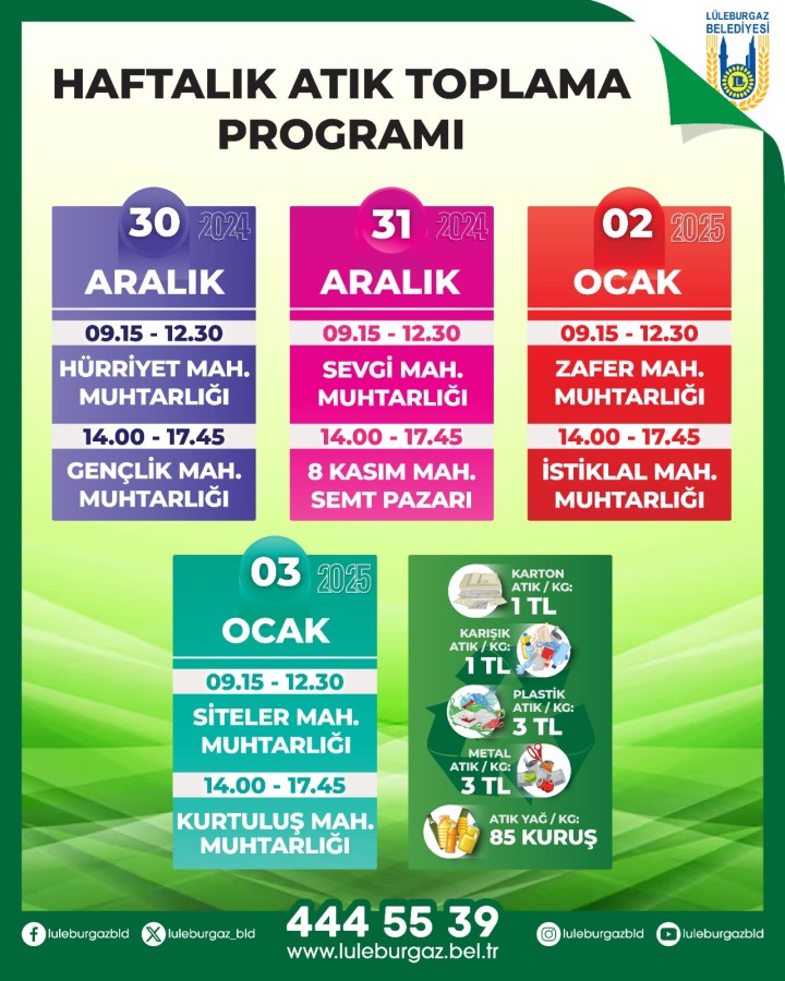 • Mobil Atık Toplama Aracı 30 Aralık-03 Ocak Programı /