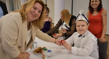 Mutlulukları gözlerinden okunan çocuklar daha sonra çalan şarkılar eşliğinde eğlendi.