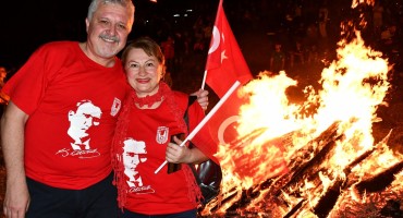 Dev ateşin etrafında bağımsızlık marşlarının söylendiği gecede Lüleburgaz halkı Ata’ya bağlılığını bir kez daha haykırdı.
