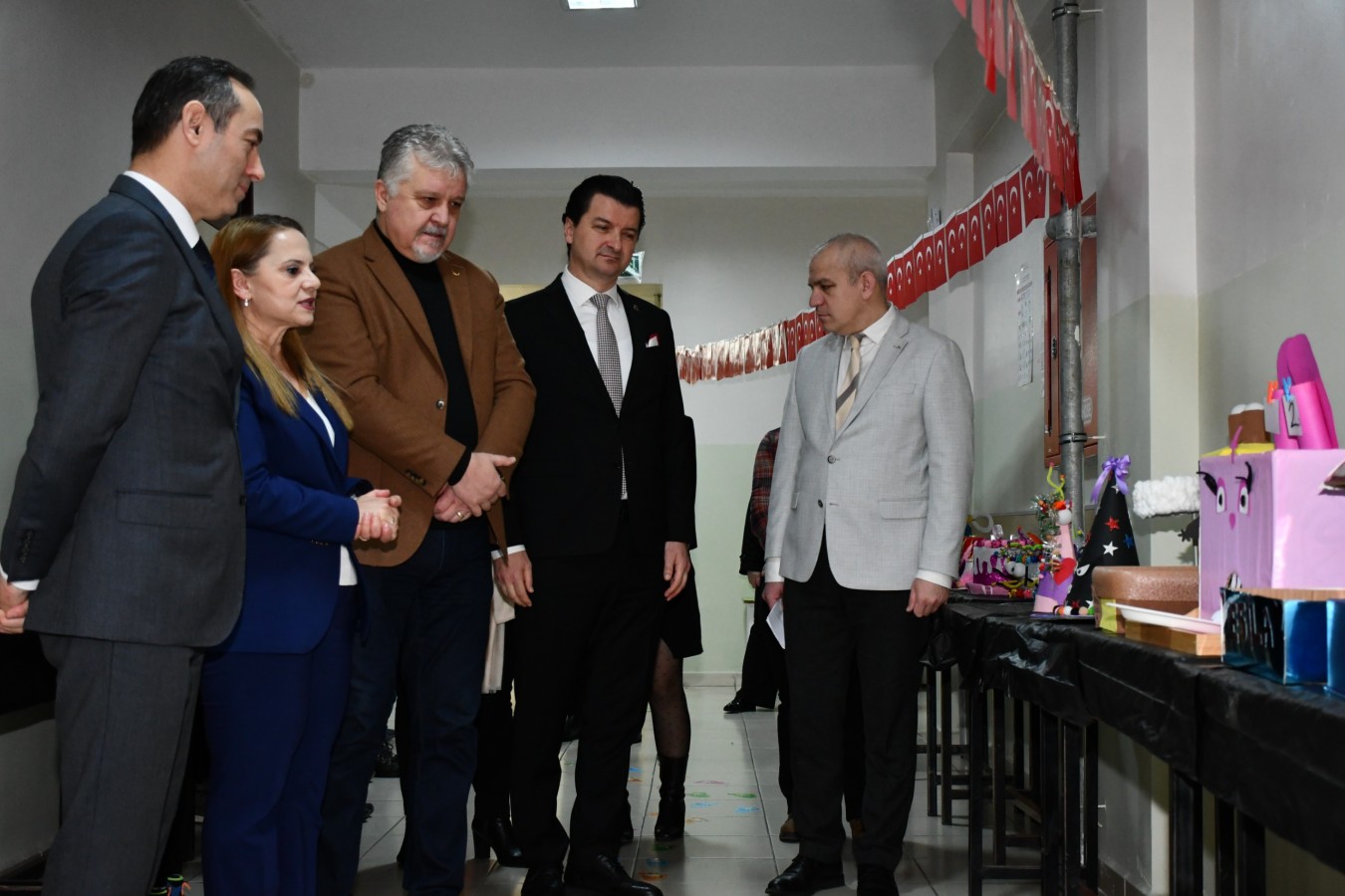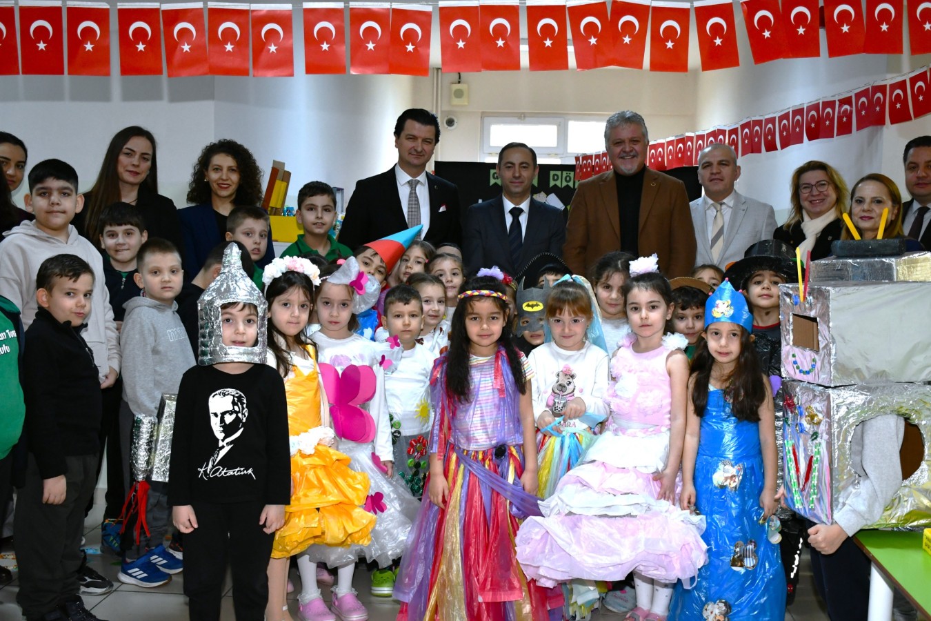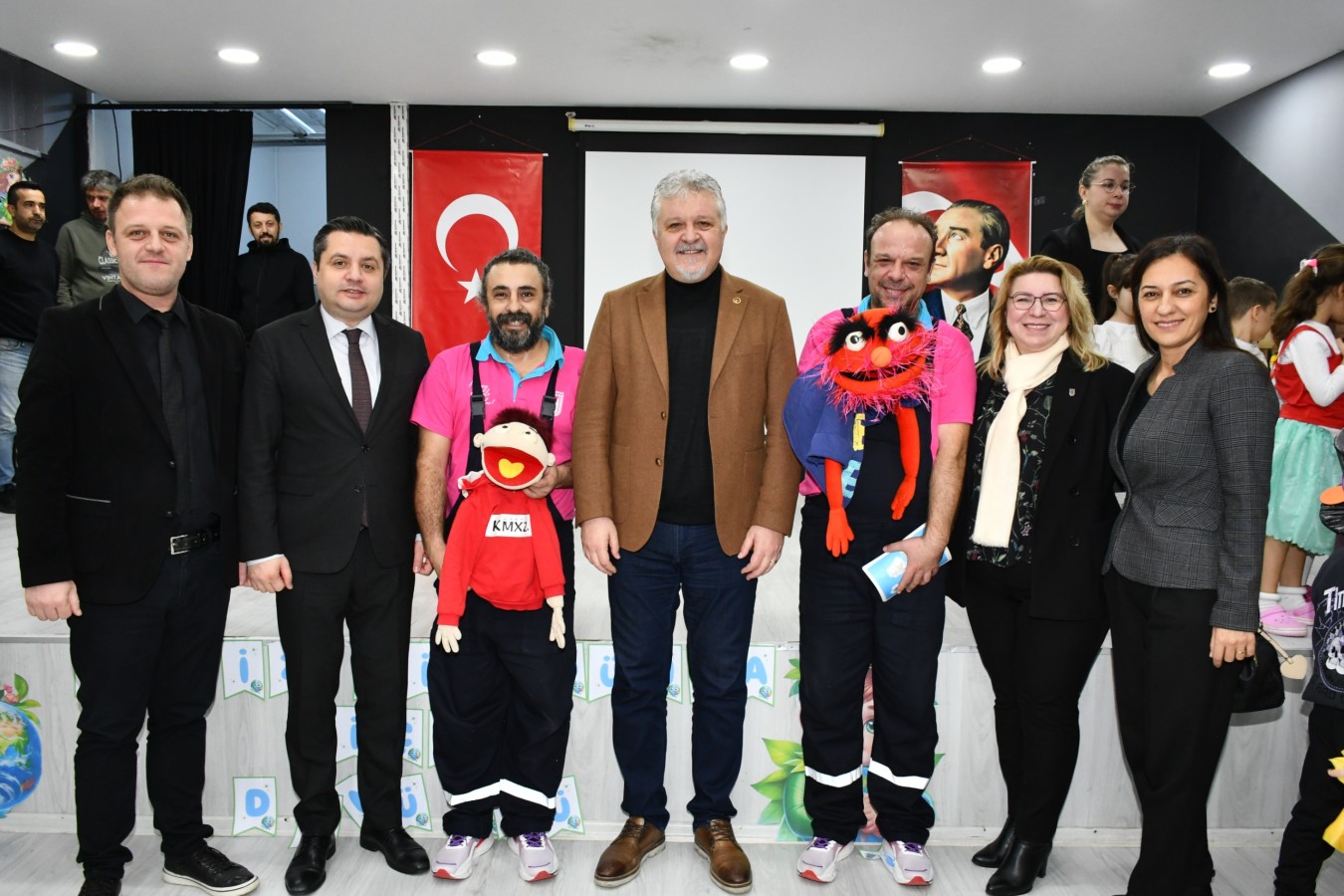 Anasınıfı öğrencilerinin atıklardan üretip yeniden kullanıma kazandırdıkları ürünlerden oluşan sergiyi gezen protokol üyeleri, daha sonra ‘Bilgeç ve Egemen Abi’ kukla gösterisini izledi.