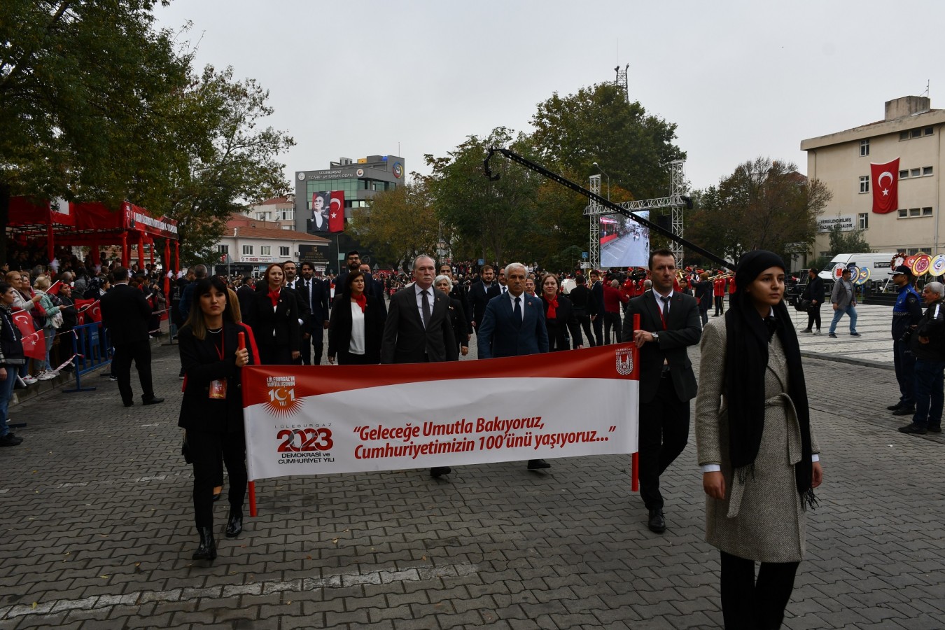 Lüleburgaz’da bulunan kamu kurum ve kuruluşlarının yanı sıra dernek ve odaların da katıldığı tören geçişinin ardından kutlamalar Kongre Meydanı’nda devam etti.