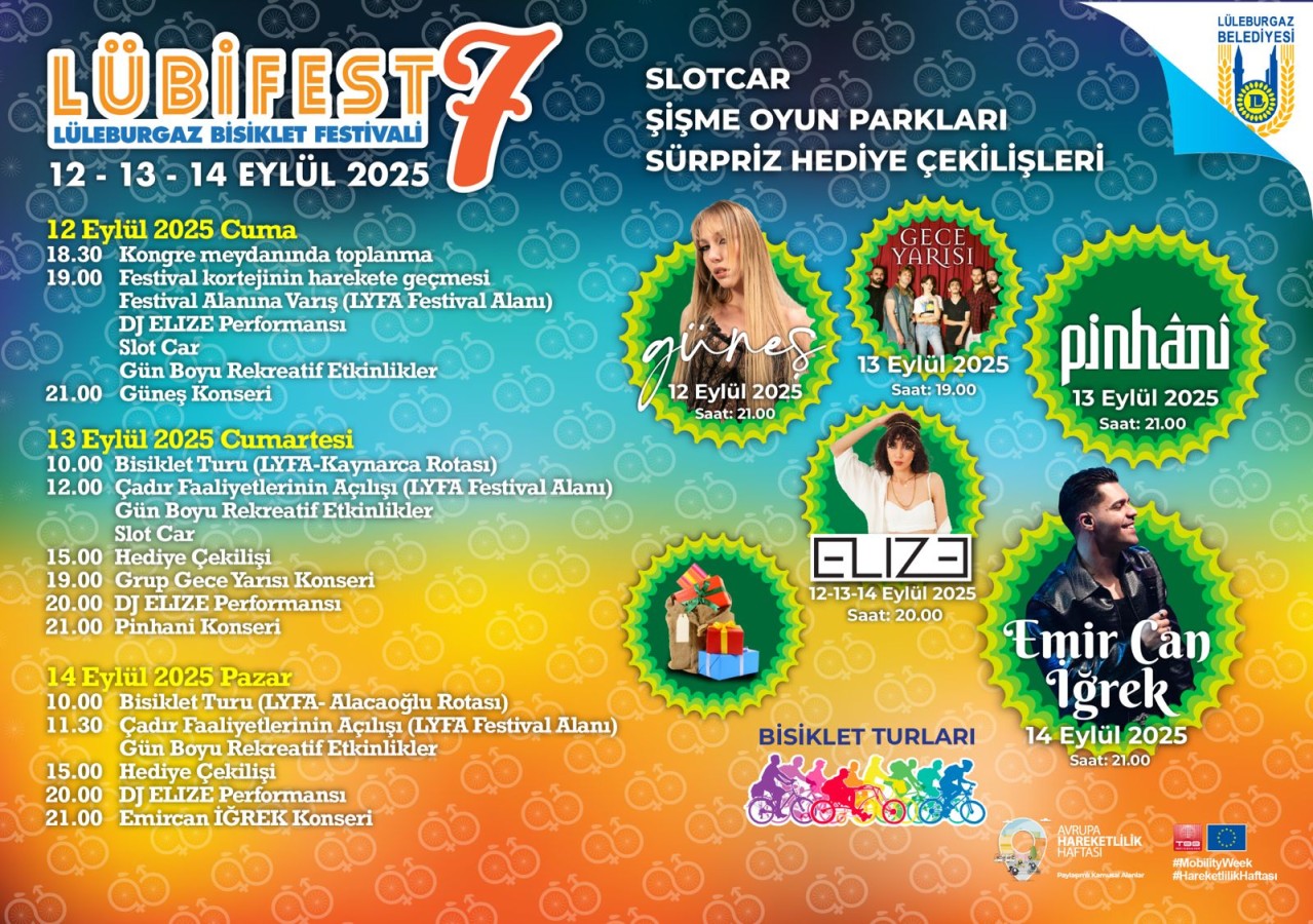 Lüleburgaz Belediyesi’nin her yıl büyük bir coşkuyla düzenlediği LÜBİFEST, bisiklet turları, sürpriz etkinlikler ve Türkiye’nin sevilen sanatçılarının konserleriyle Lüleburgazlıları bir kez daha müzik ve sporun birleştirici gücünde buluşturacak.