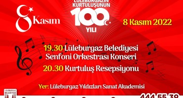 Lüleburgaz’ın düşman işgalinden kurtuluşunun 100’üncü yılı olan 8 Kasım programı belli oldu. Sabah çelenk sunma, geçit törenleriyle başlayıp çeşitli etkinliklerle devam edecek kutlama programı, akşam Lüleburgaz Yıldızları Sanat Akademisi’ndeki Lüleburgaz Belediyesi Senfoni Orkestrası konseri ve Kurtuluş Resepsiyonu’yla taçlanacak.