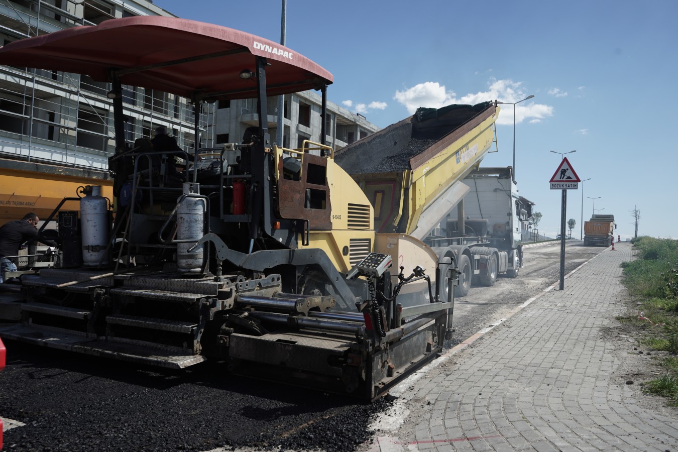 Trafik güvenliği açısından yolda oluşabilecek kaymaları önlemek amacıyla daha önce stabilize ve parke taş düzenlemeleri yapılan caddede, bitümlü asfalt serme işlemlerine başlandı.