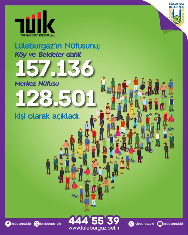 Lüleburgaz’ın köy ve beldeler dahil nüfusu ise 157 bin 136 olarak kayıtlara geçti.